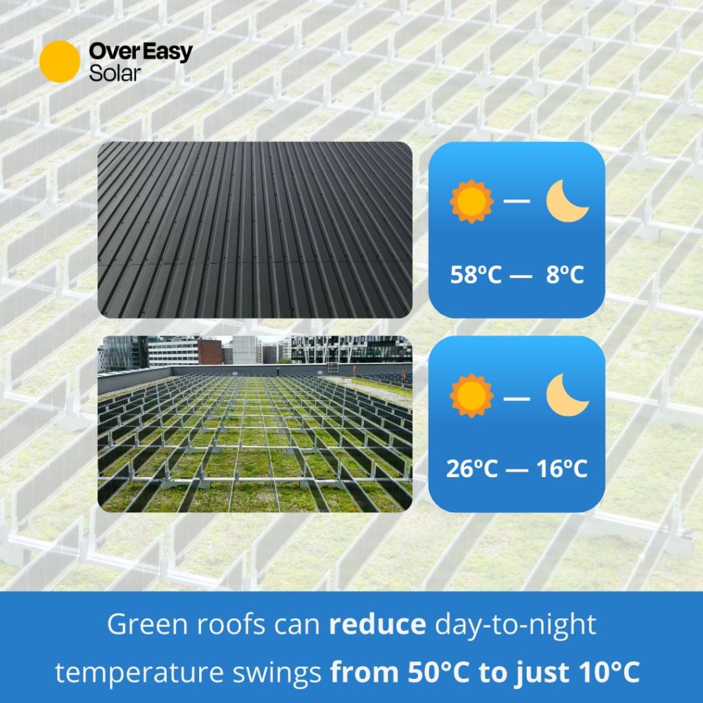 Det er et almindeligt problem – men et der nemt kan løses. Den nye Solar Green Roofs Resource Guide (2025) fremhæver, hvordan tilføjelse af et vegetationslag 🌱 under solpaneler 🌞 kan reducere tagtemperaturerne med 4,5°C om sommeren 🌡️