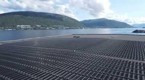 Dronevideo af vertikal solcelleinstallation på fladt tag i Tromsø, Norge
